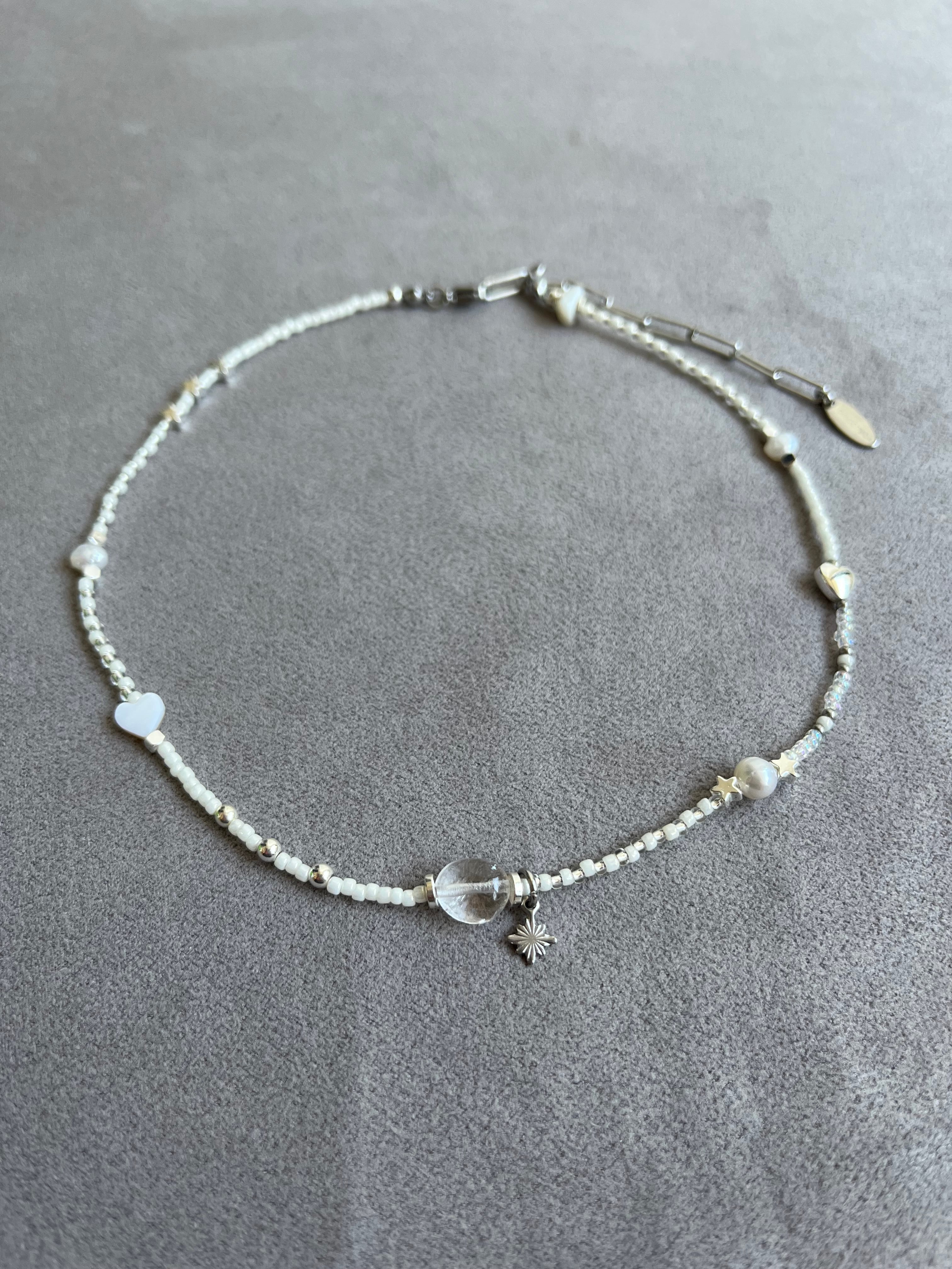 パールやシェル、天然石、など様々なビーズを使って製作しております。