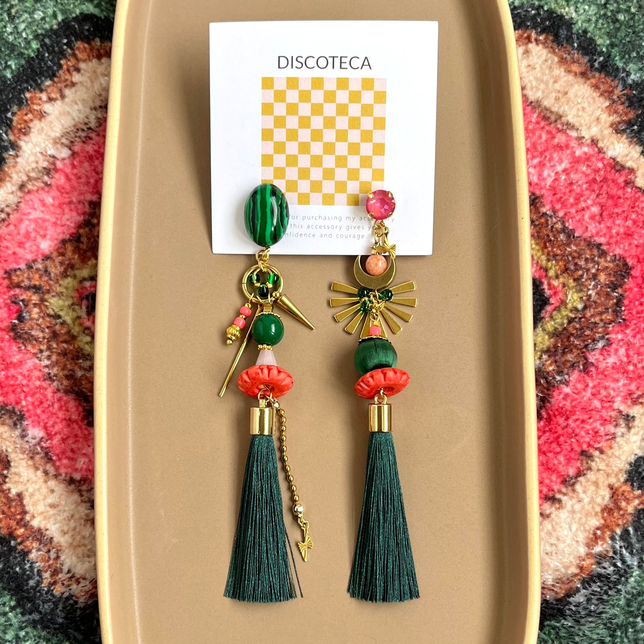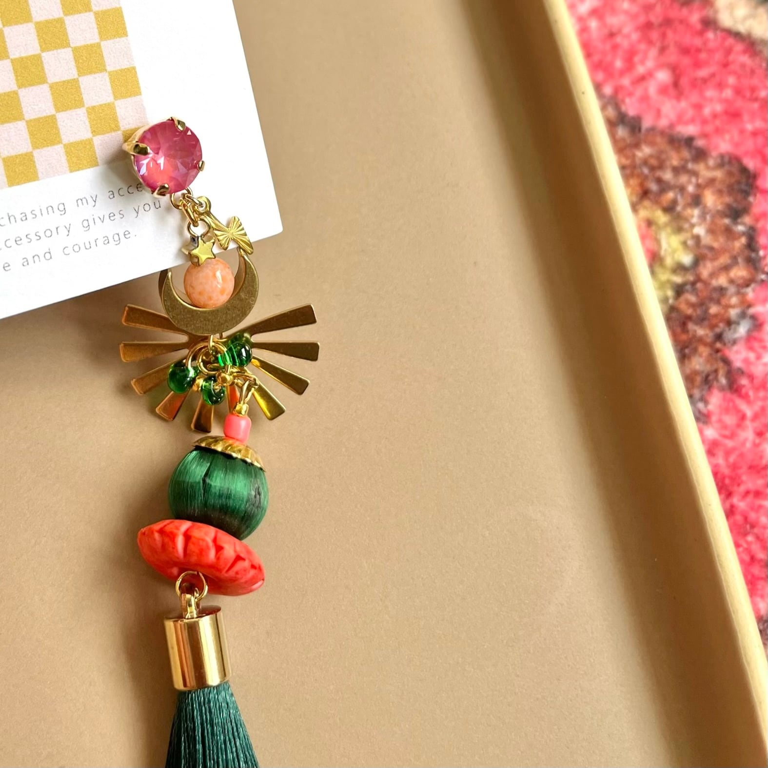 鮮やかなタッセルやビーズを組み合わせた華やかなピアス。