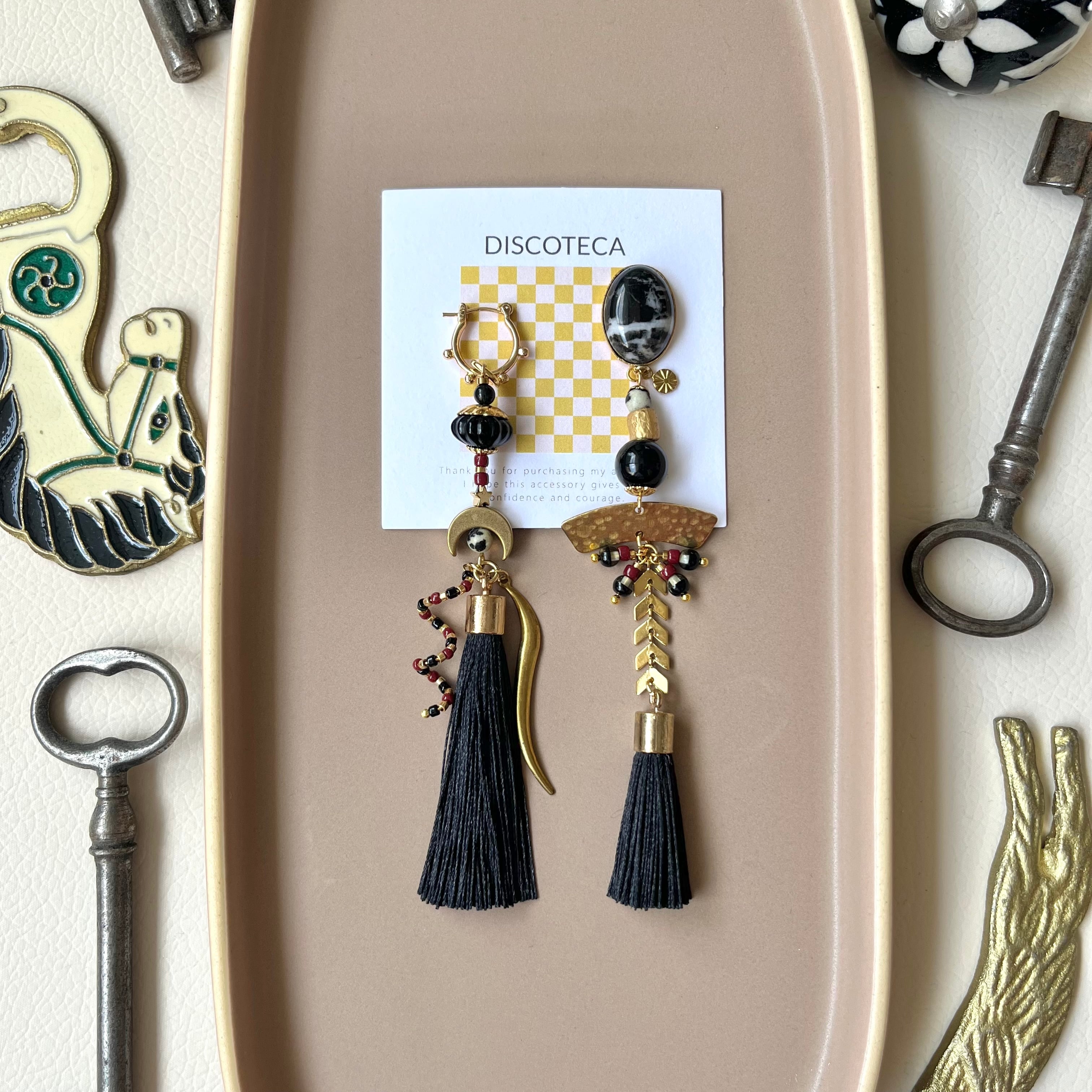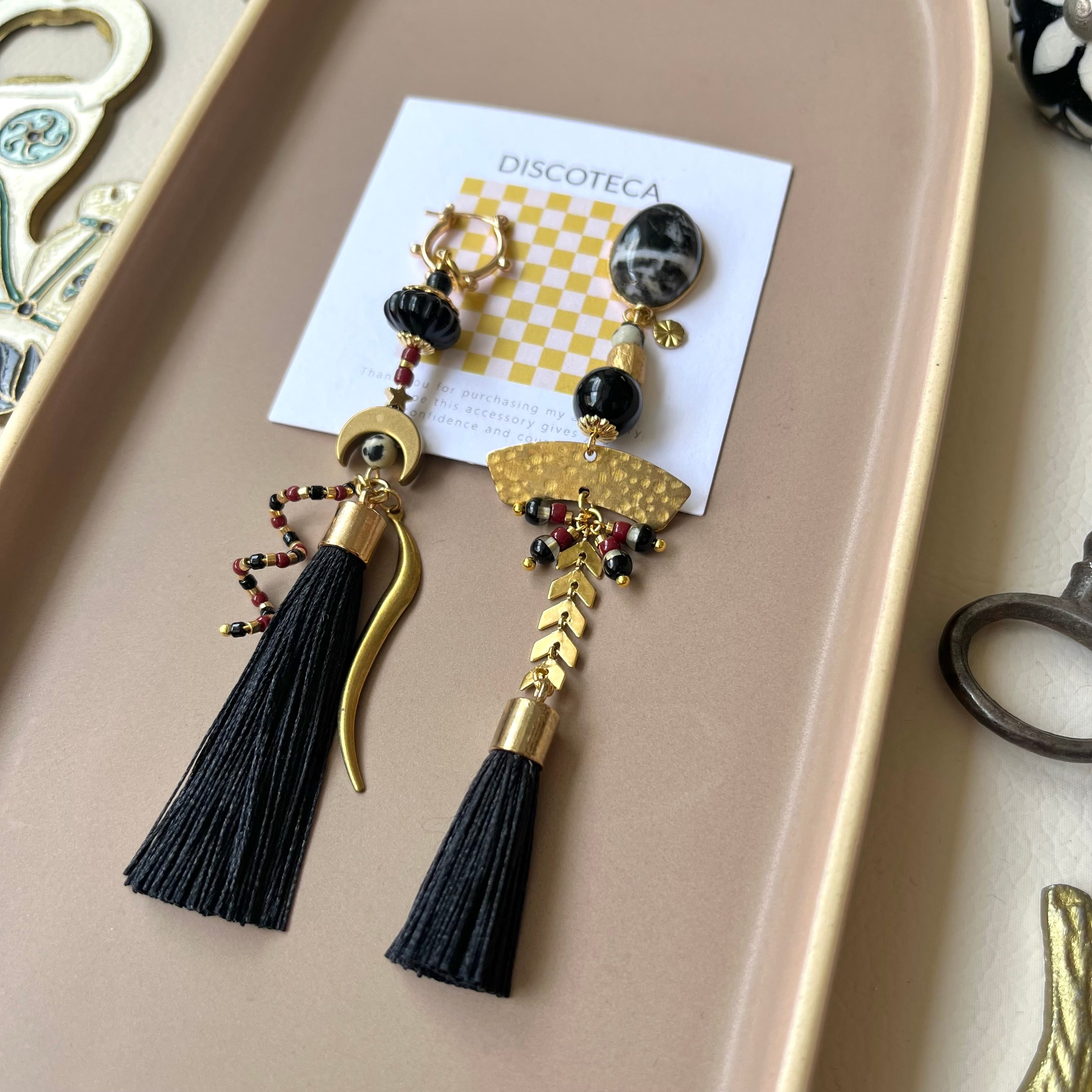鮮やかなタッセルやビーズを組み合わせた華やかなピアス。