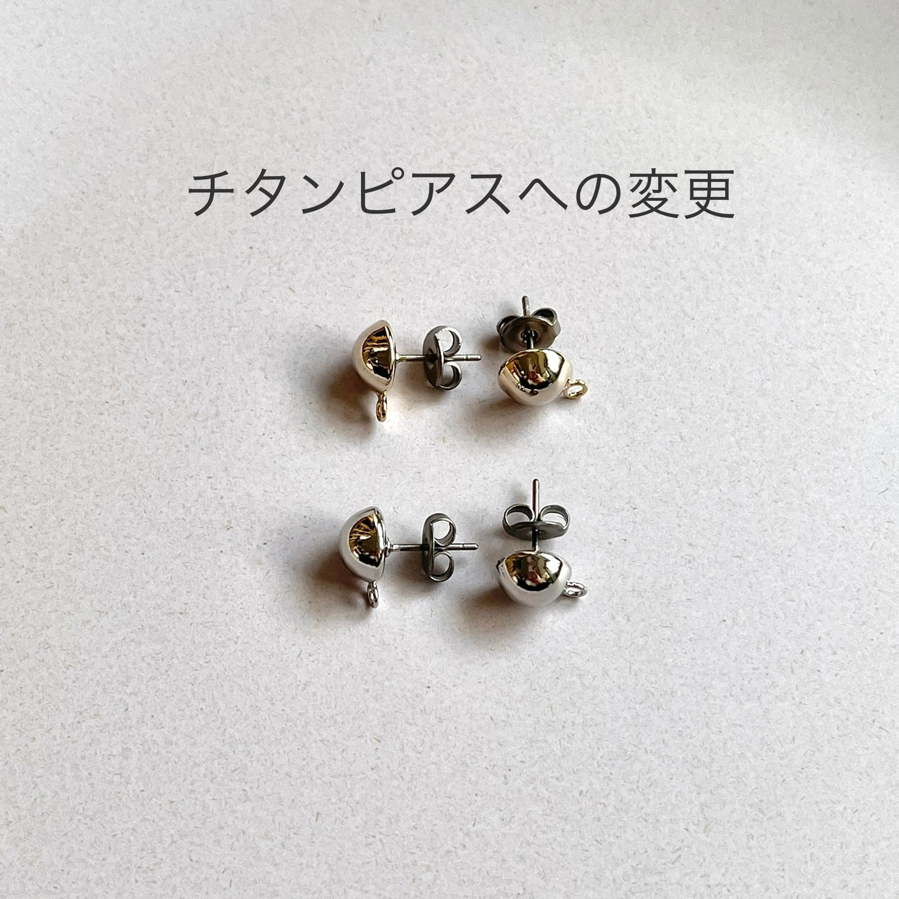 アイテム覧の「チタンピアスへの変更」120円を一緒に購入下さいませ。片方のみ12枚目の画像のピアスに変更になります。