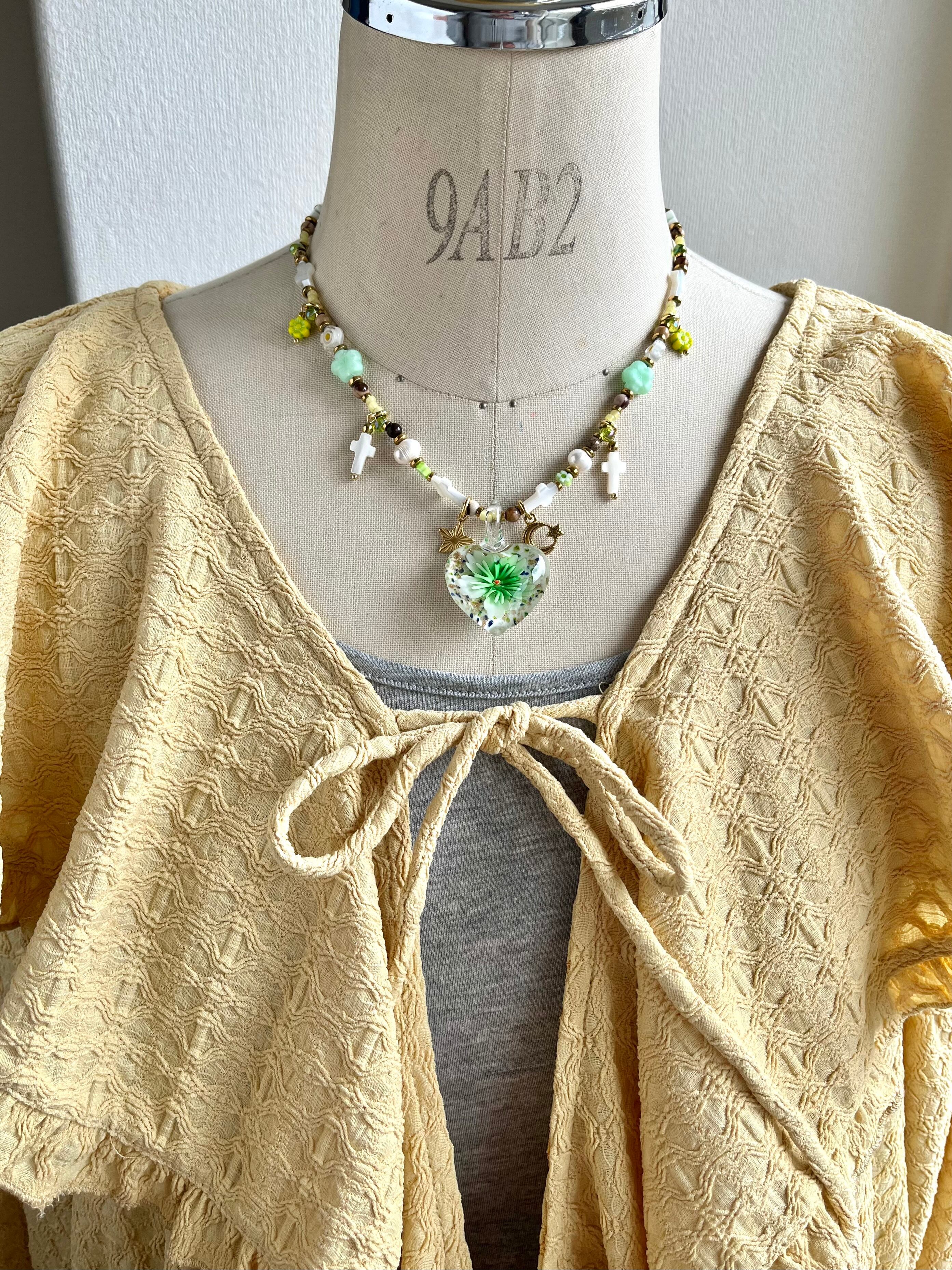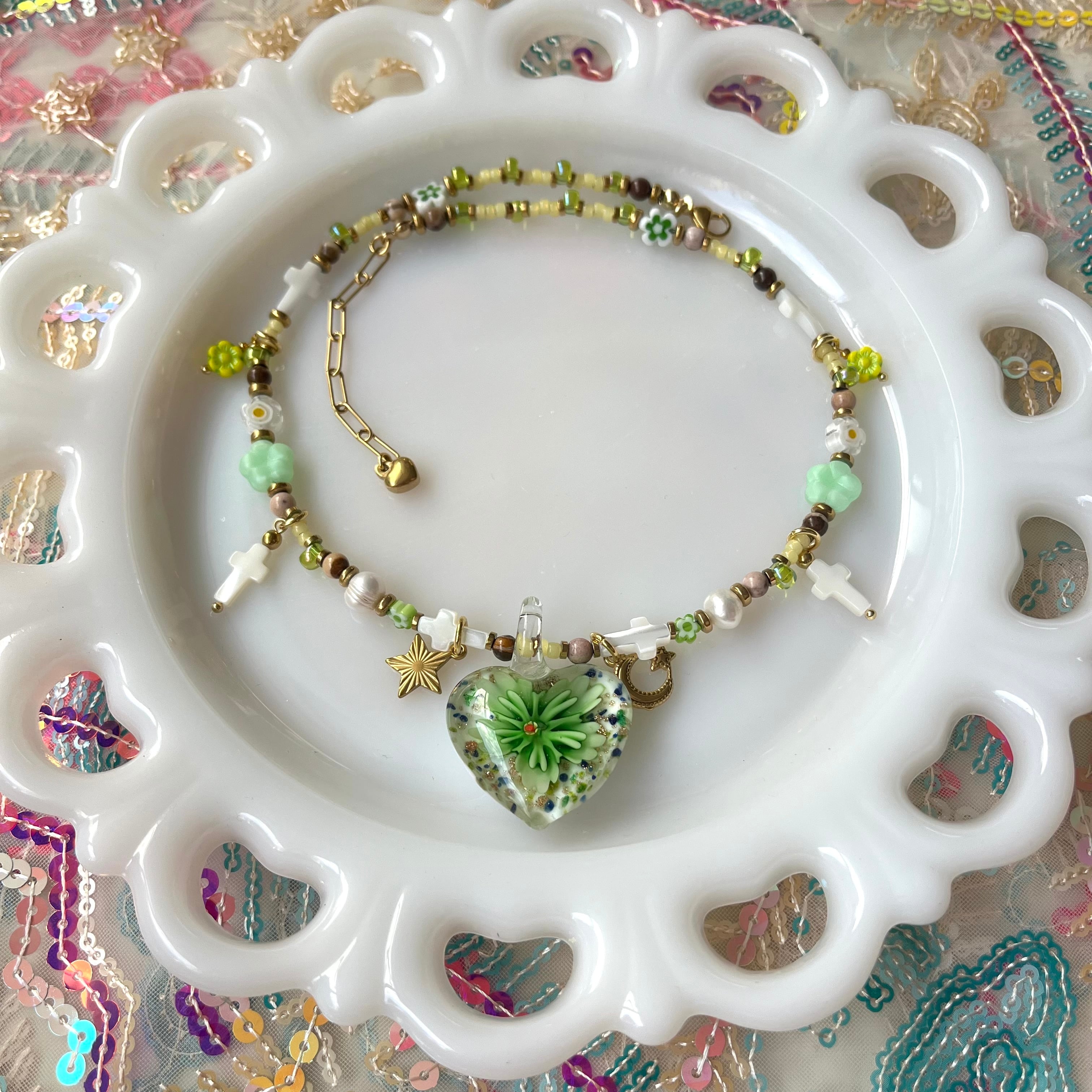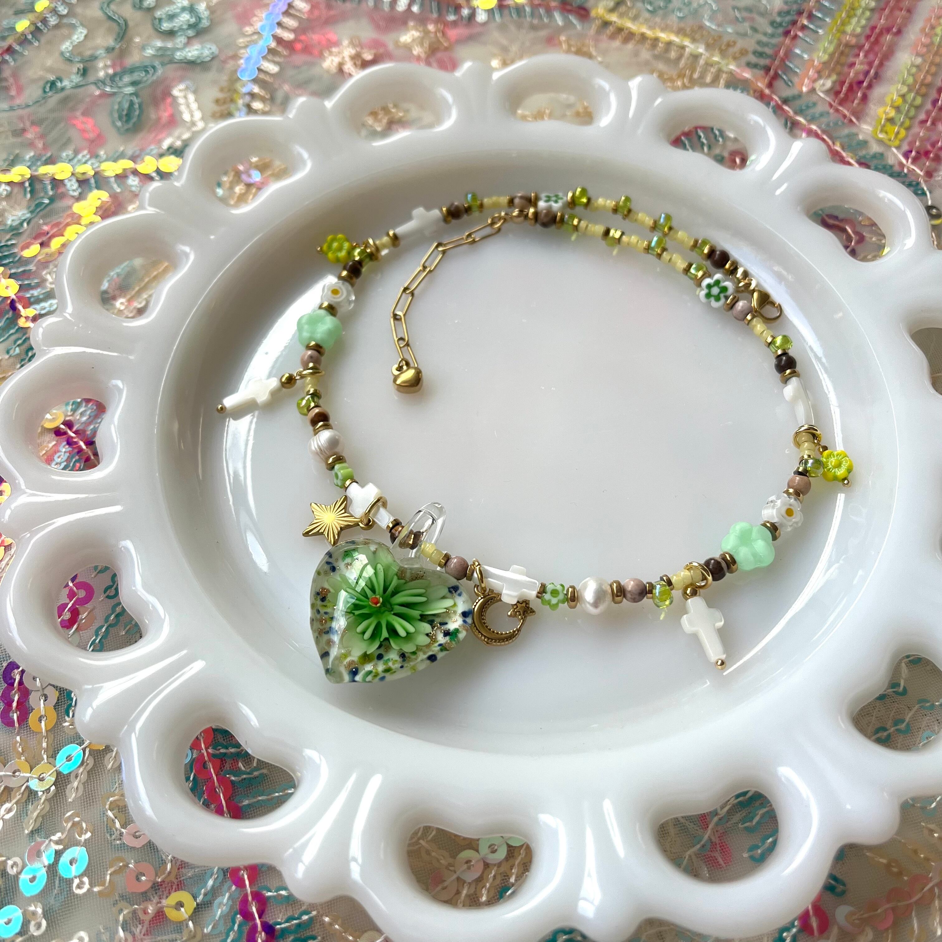 Glass Heart Floral Necklace gr
