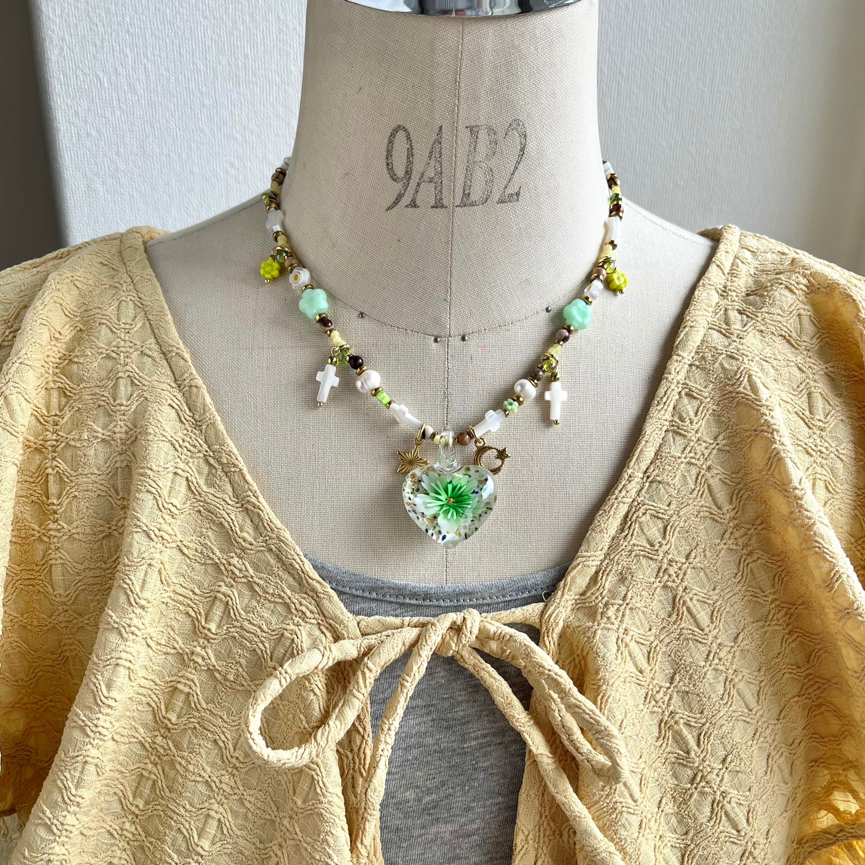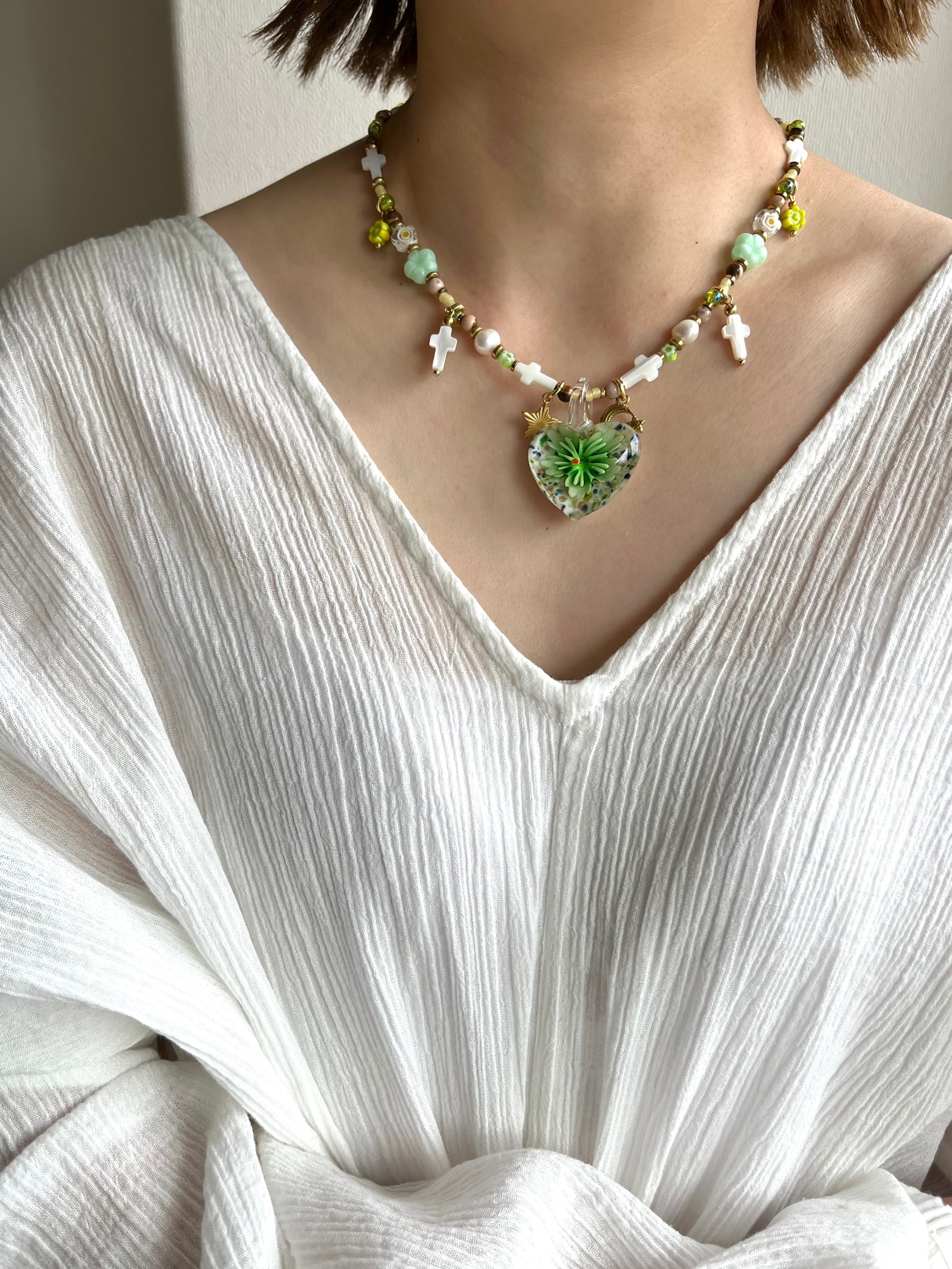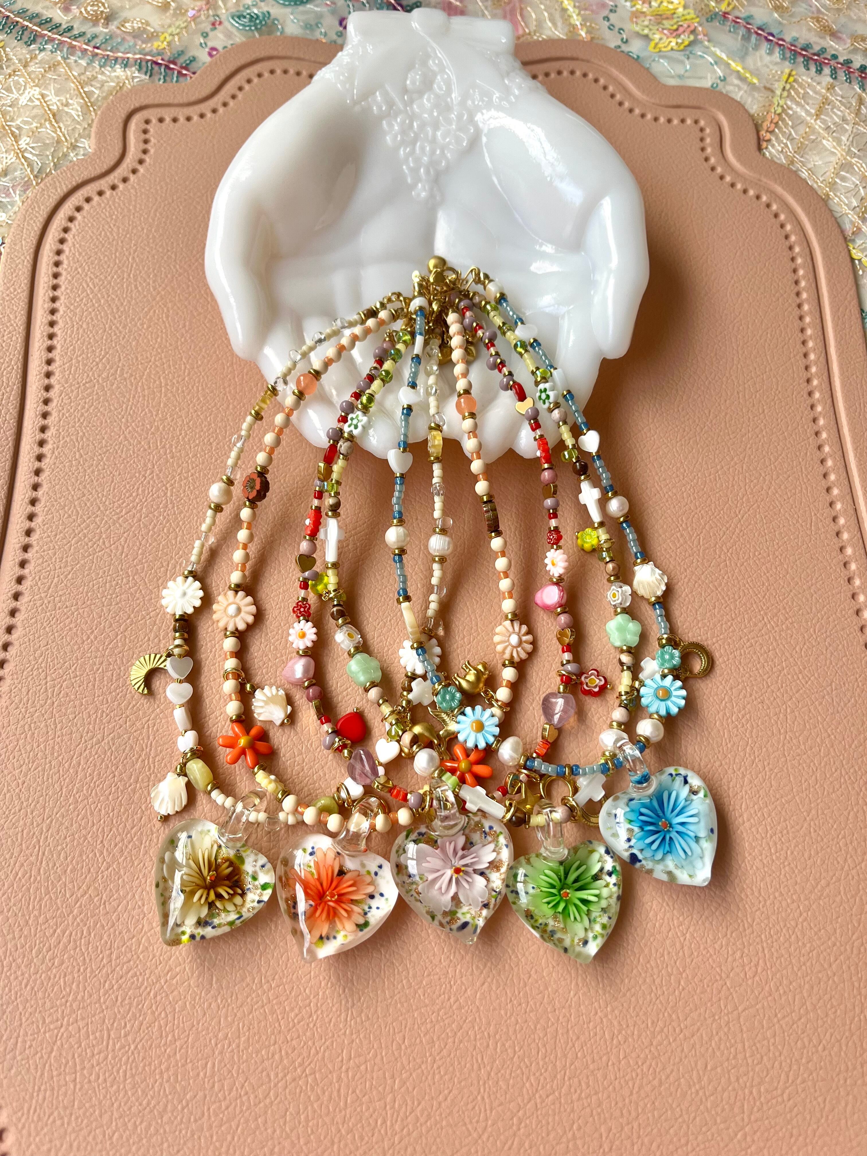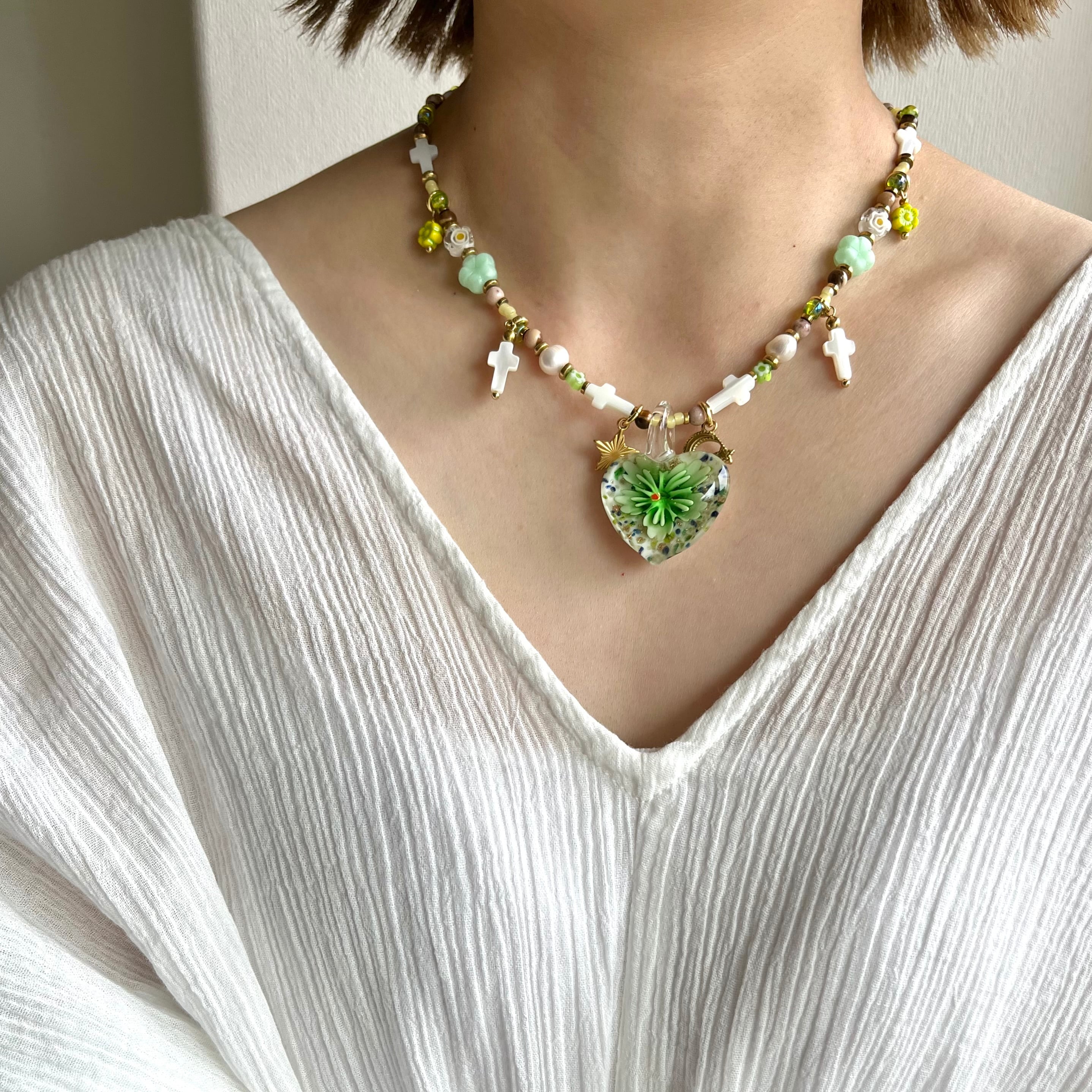 Glass Heart Floral Necklace gr