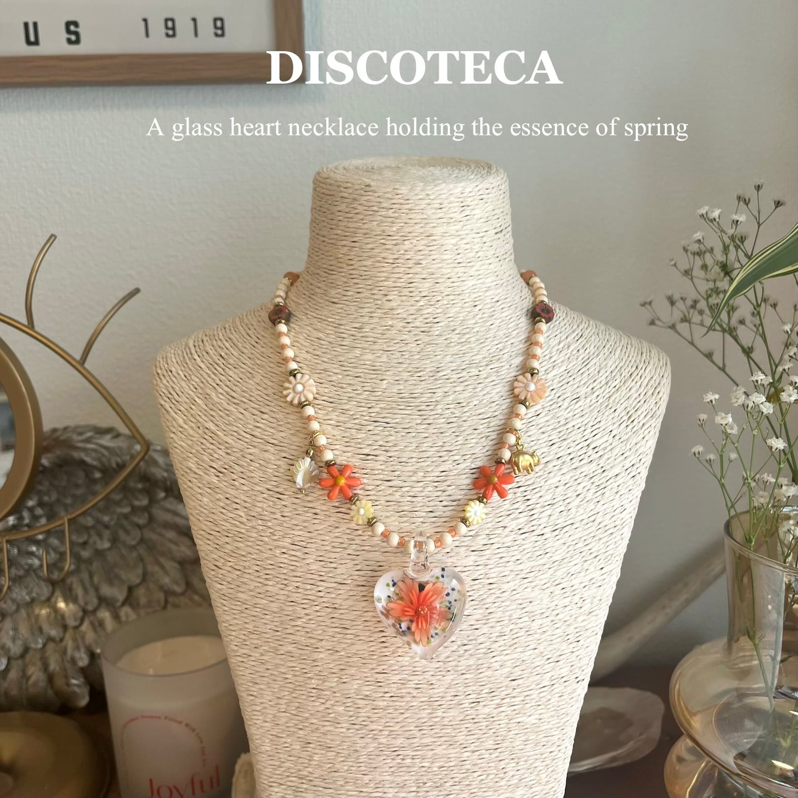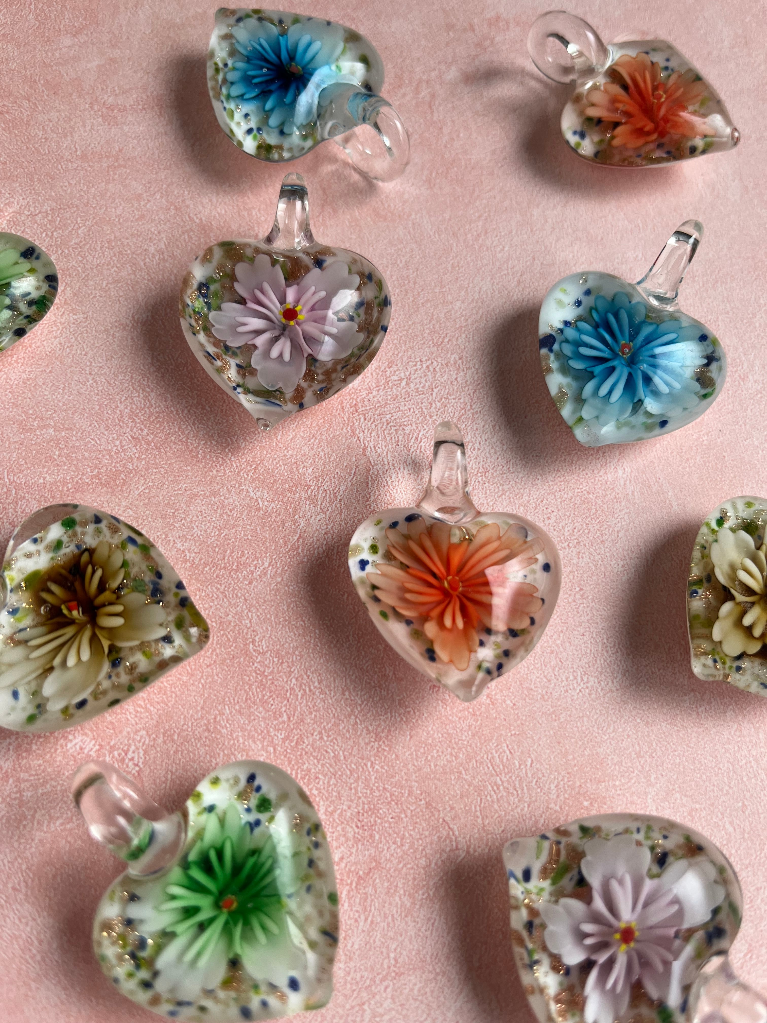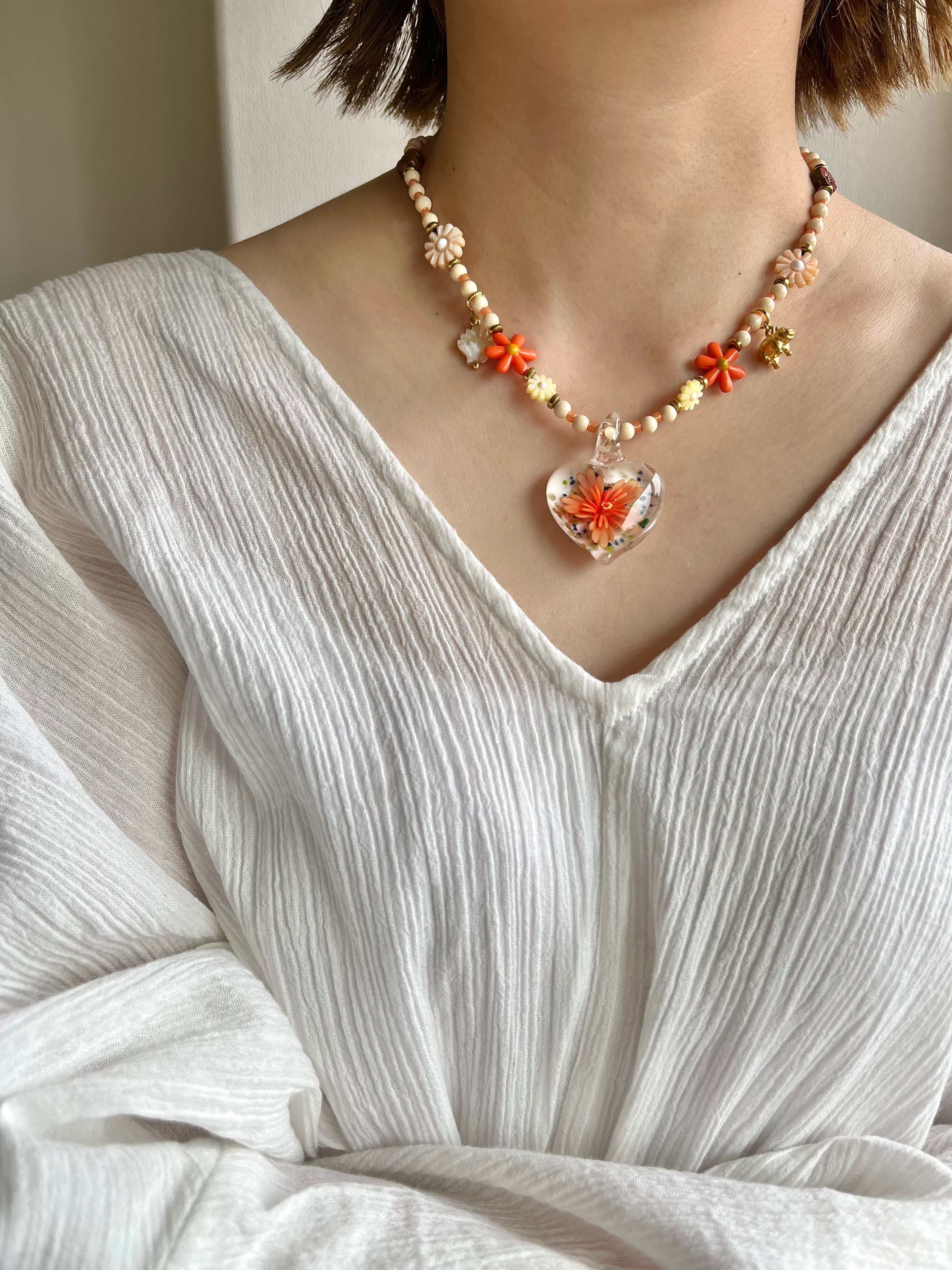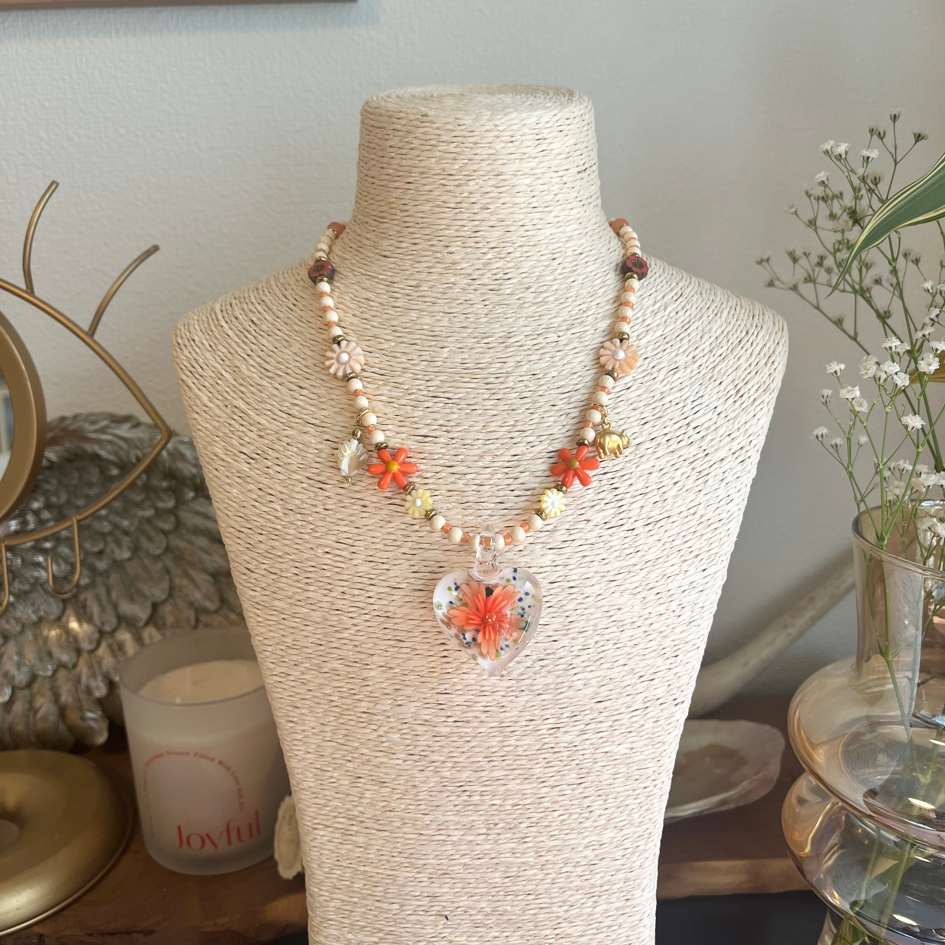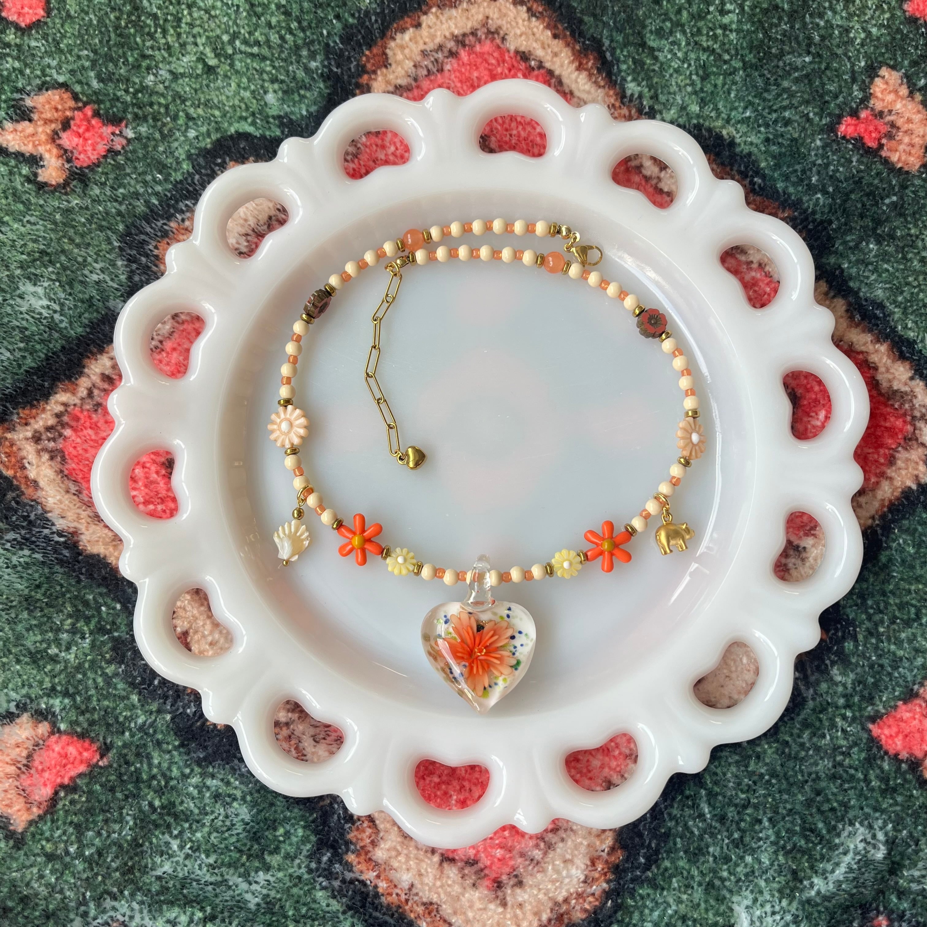 Glass Heart Floral Necklace or