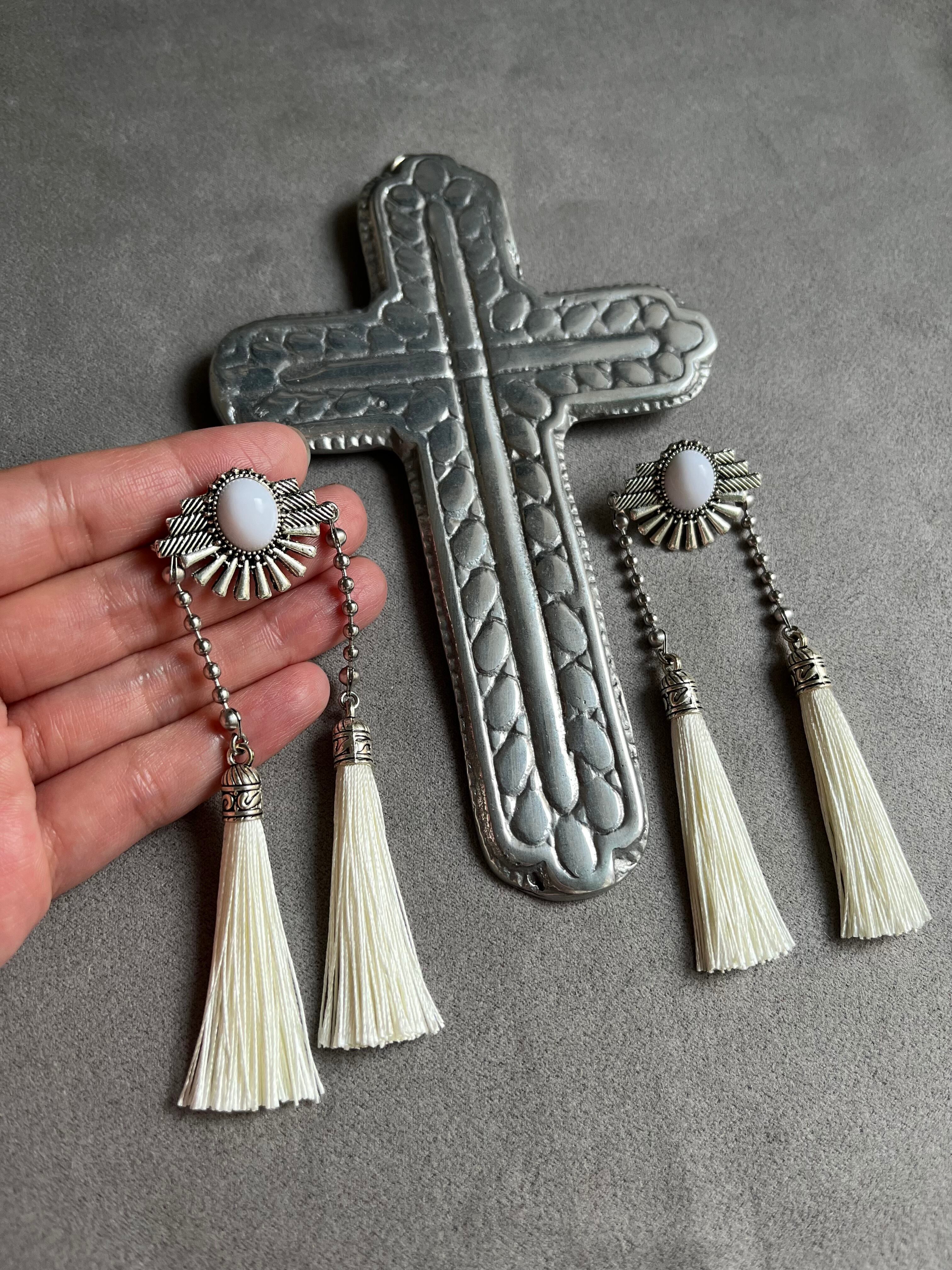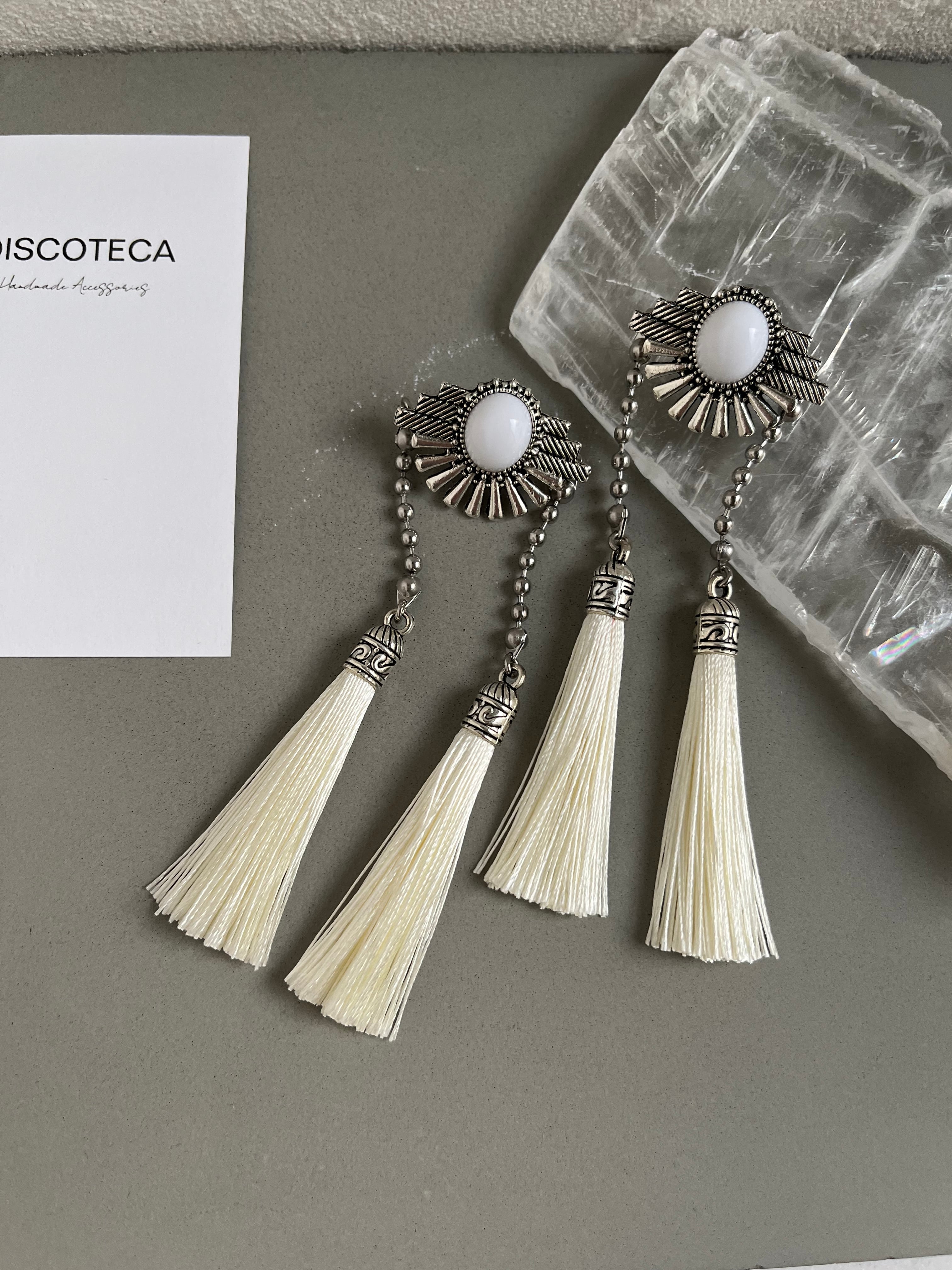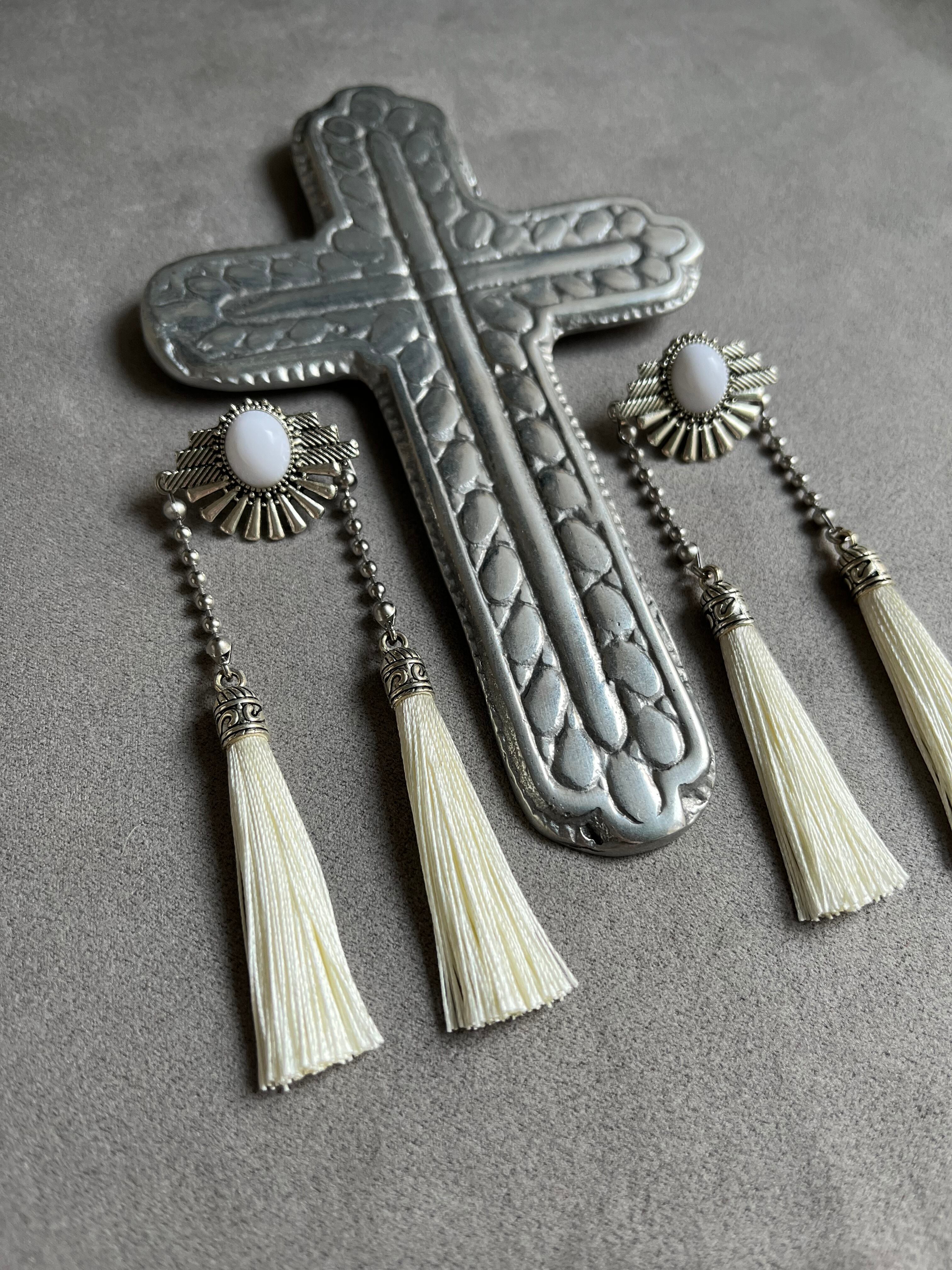 ネイティブアメリカン風コンチョのトップを使ったタッセルピアス。