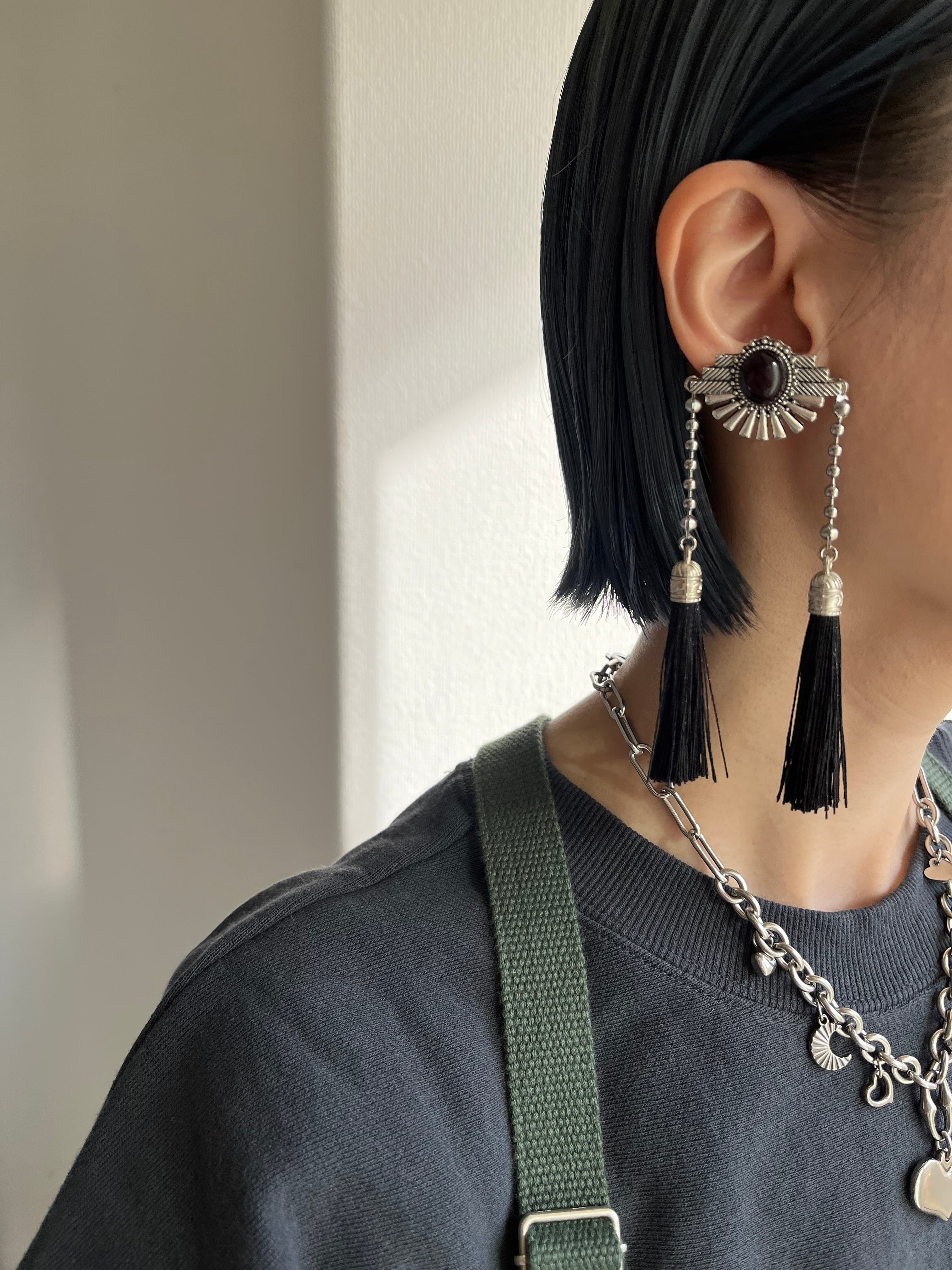 ネイティブアメリカン風コンチョのトップを使ったタッセルピアス。