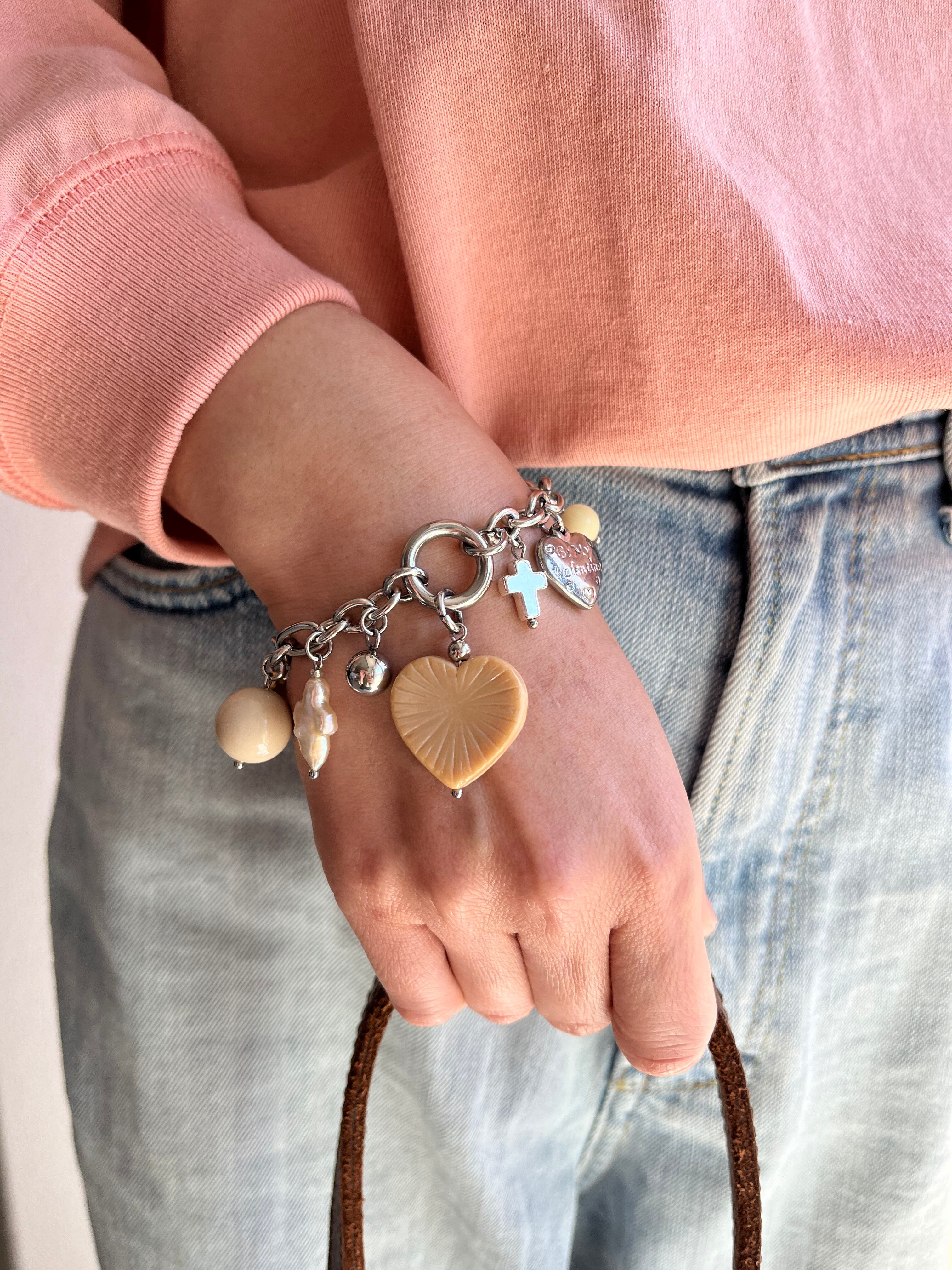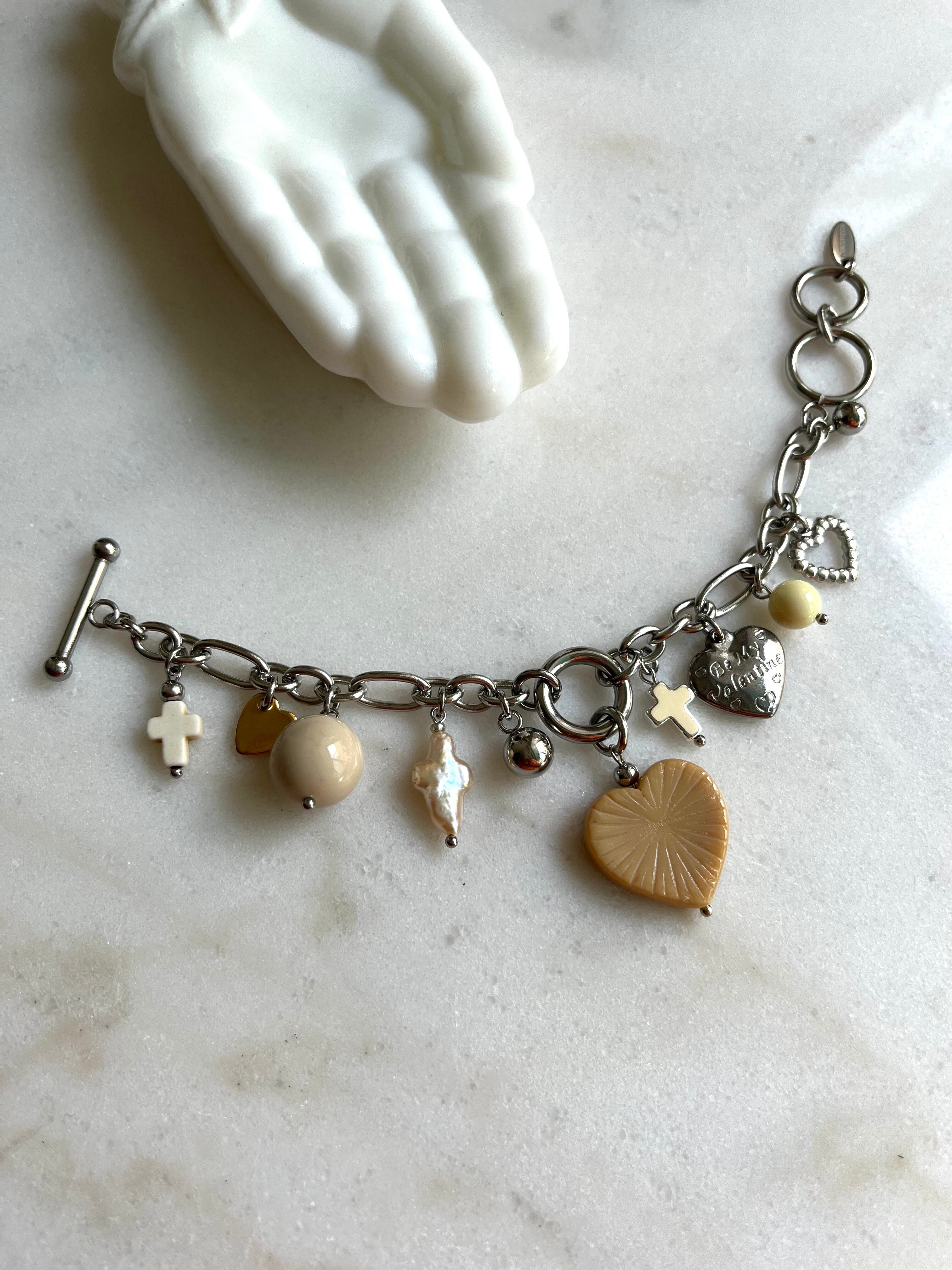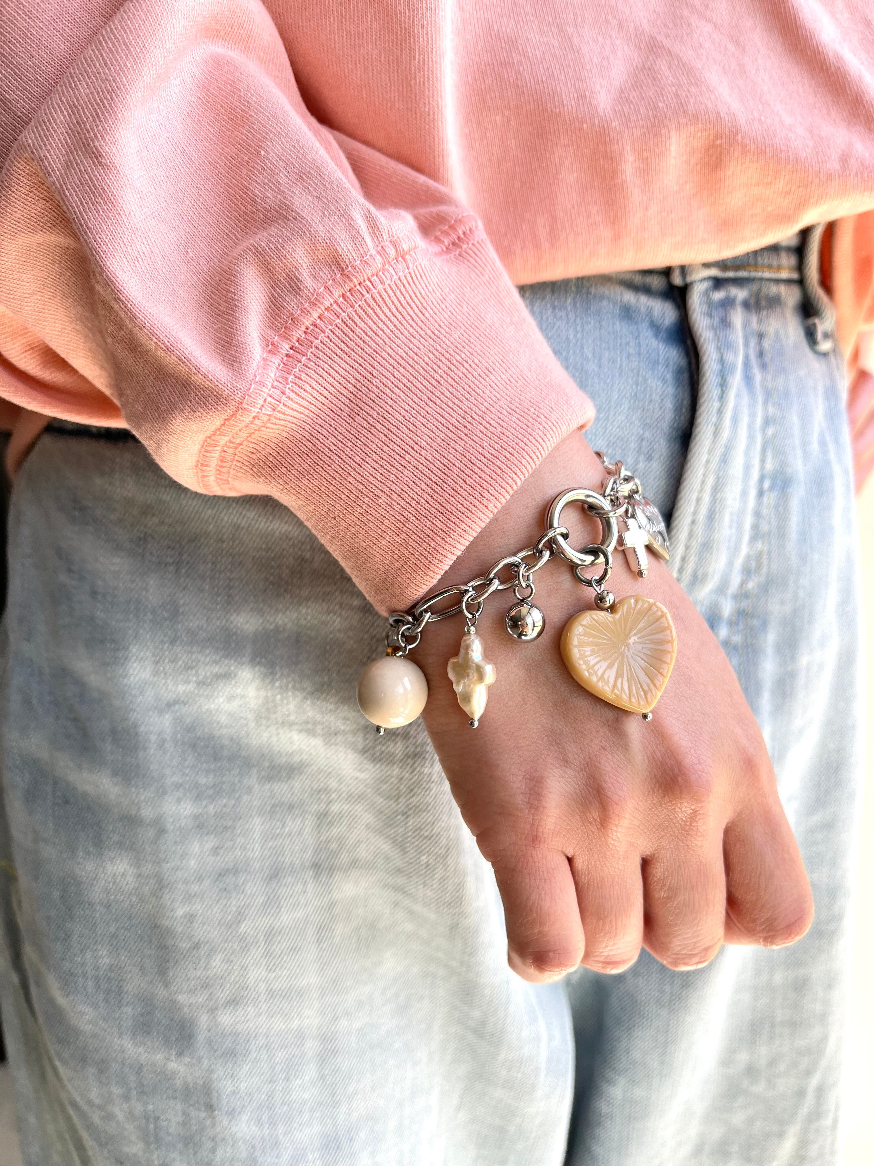 チャーム ステンレス、ガラス、淡水パール、