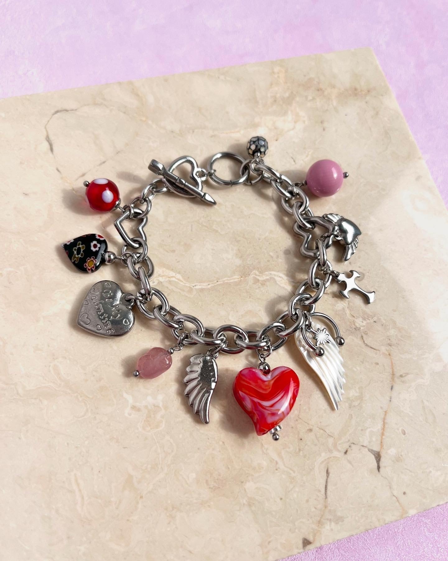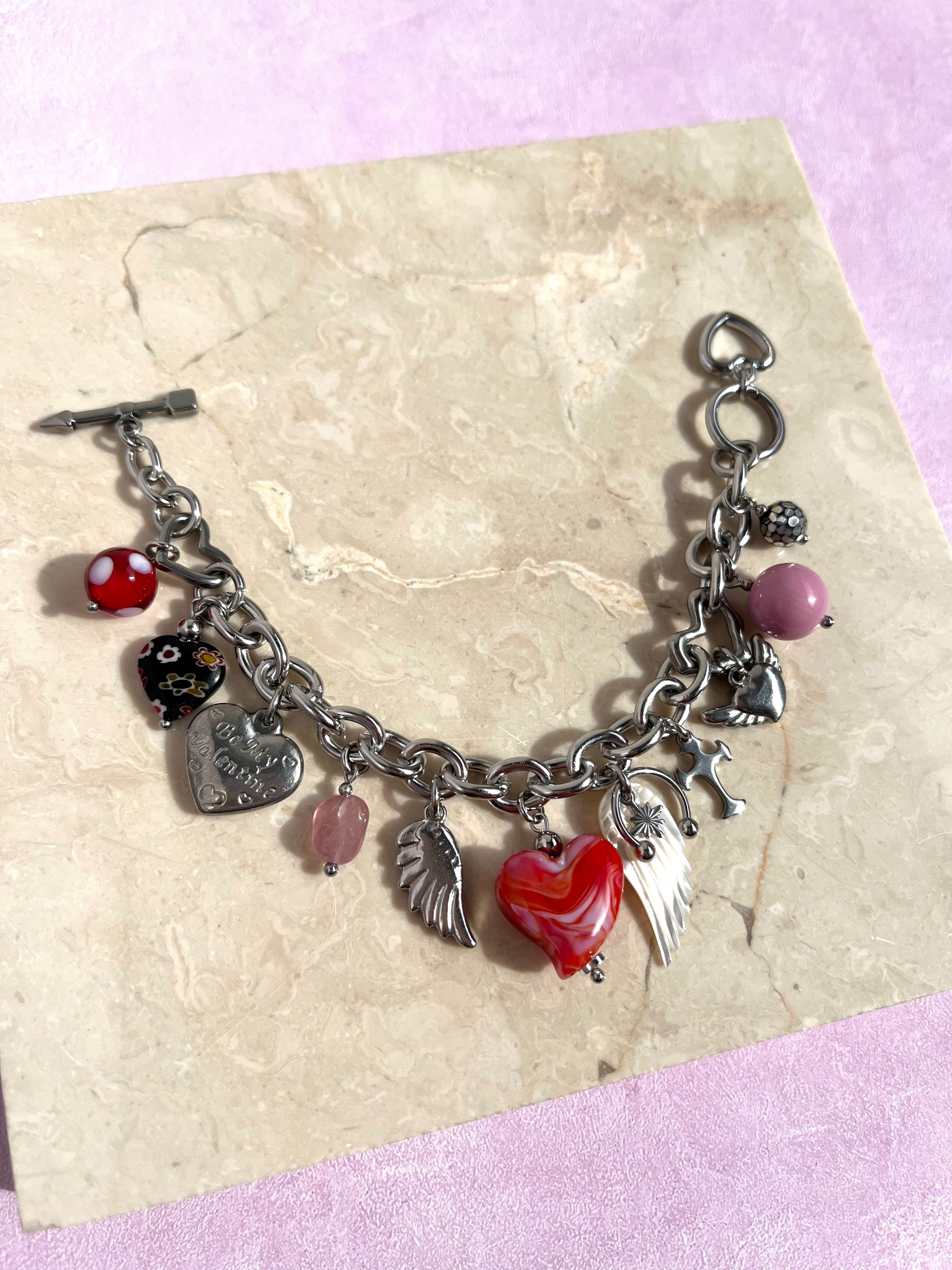 ヴィンテージのハートビーズが目を惹く